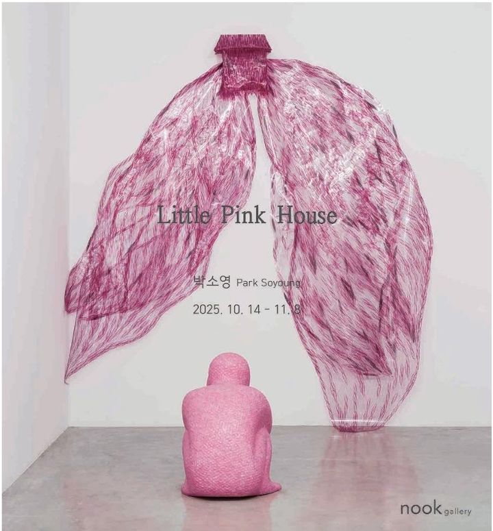 핑크빛 상실의 집…누크갤러리, 박소영 개인전 핑크빛 상실의 집. 노래의 가사가 시각 예술로 변환된다. 서울 종로구 평창동 누크갤러리는 오는 14일부터 11월 8일까지 박소영 개인전 'Little Pink House'를 개최한다. 이번 전시는 미국 록 밴드 더 자르스(The Czars)의 동명 곡에서 영감을 받아 인간의 상실과 정체성 탐구를 조형 언어로 풀어낸다. 박소영(인하대학교 조형예술학과 교수·64)은 음악과 문학적 가사를 미술 작품으로 환원하는 작업을 이어왔다. 이번 전시에서는 조각과 드로잉 신작 20여 점을 선보인다. 특히 'Little Pink House'(2004)의 가사에 등장하는 라일락, 타이거릴리, 홀리호크, 금어초, 접시꽃, 넝쿨장미, 글라디올러스, 백합 등 다양한 꽃들을 식물도감처럼 절제된 감정으로 객관화해 표현했다. 작가는 노래의 청각적 감정과 서정적 멜로디를 시각적 언어로 환원하며 인간 내면의 상실과 정체성에 관한 질문을 제기한다. 박소영은 “청각으로 들은 음악은 뇌를 거쳐 가슴으로 이어지고, 그것은 손끝으로 이어지는 ‘조각가의 회로도’”라며 이번 작업의 단초를 설명했다. 박소영은 독일 슈투트가르트 국립 조형미술대학교, 성신여자대학교 대학원, 인하대학교를 졸업했다. 주요 개인전으로는 '모란과 나비'(스페이스몸미술관, 청주, 2024), '블링'(드로잉룸, 서울, 2023), 'Buzzing'(아트스페이스3, 서울, 2022), '뿔'(A-Lounge, 서울, 2019) 등이 있다. 2025/10/08