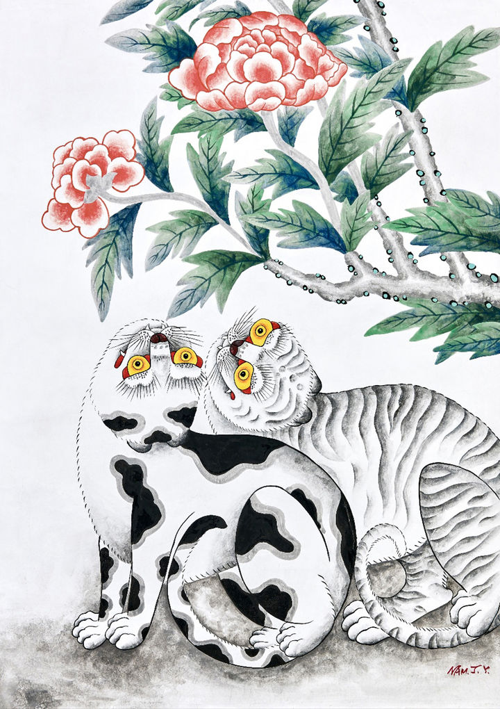 정산의 작품에 자유로이 출렁거리는 색 띠의 향연은 자아의 확장과 활성화된 무의식을 표현한다.
